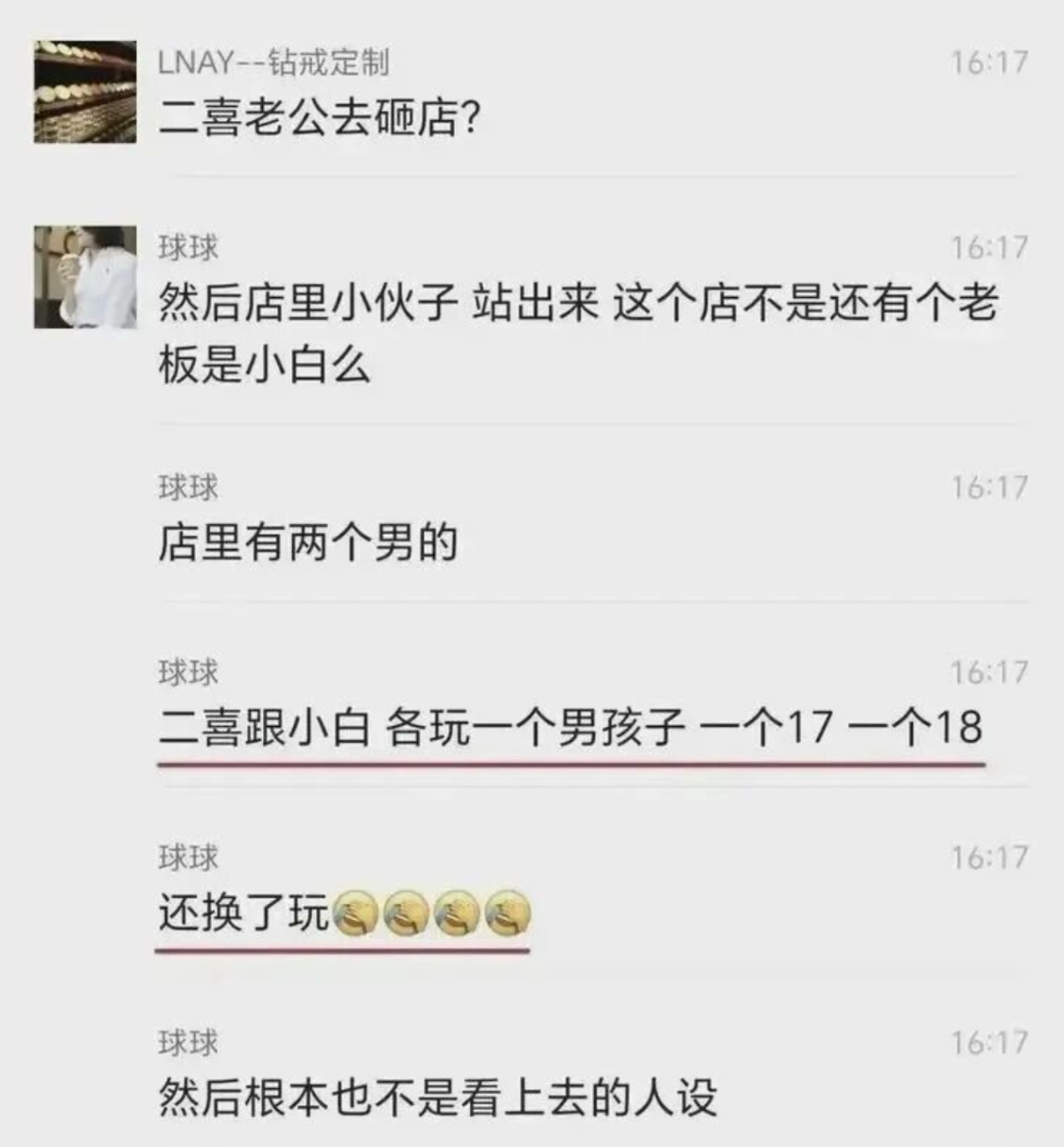 小白本身有男友但未婚,有人爆料称,她和二喜合伙的店里有两个少年(17岁和18岁),两人“各玩一个,还换着玩”!